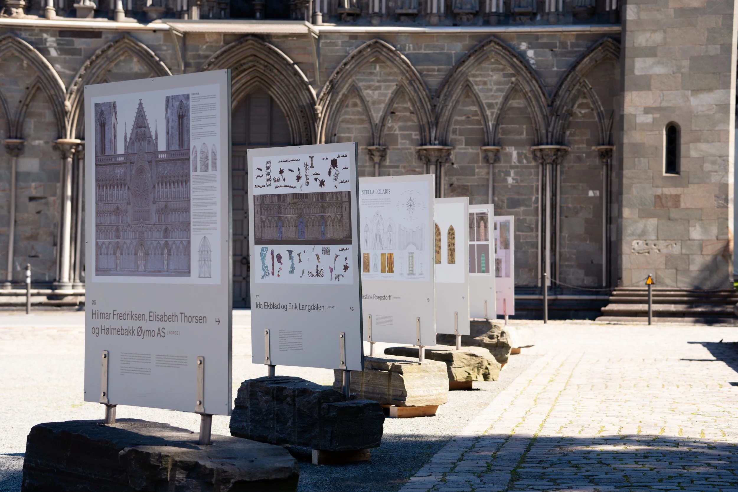 During the summer of 2024, the 11 sketch proposals were exhibited at the West Front Square. It was a way to include the public in the process and create awareness around the upcoming transformation. It also provided an opportunity for visitors and locals to engage deeply with the artists’ interpretations and the proposals’ unique and original perspectives on the cathedral. The placards presenting the sketches were made by TANK.
