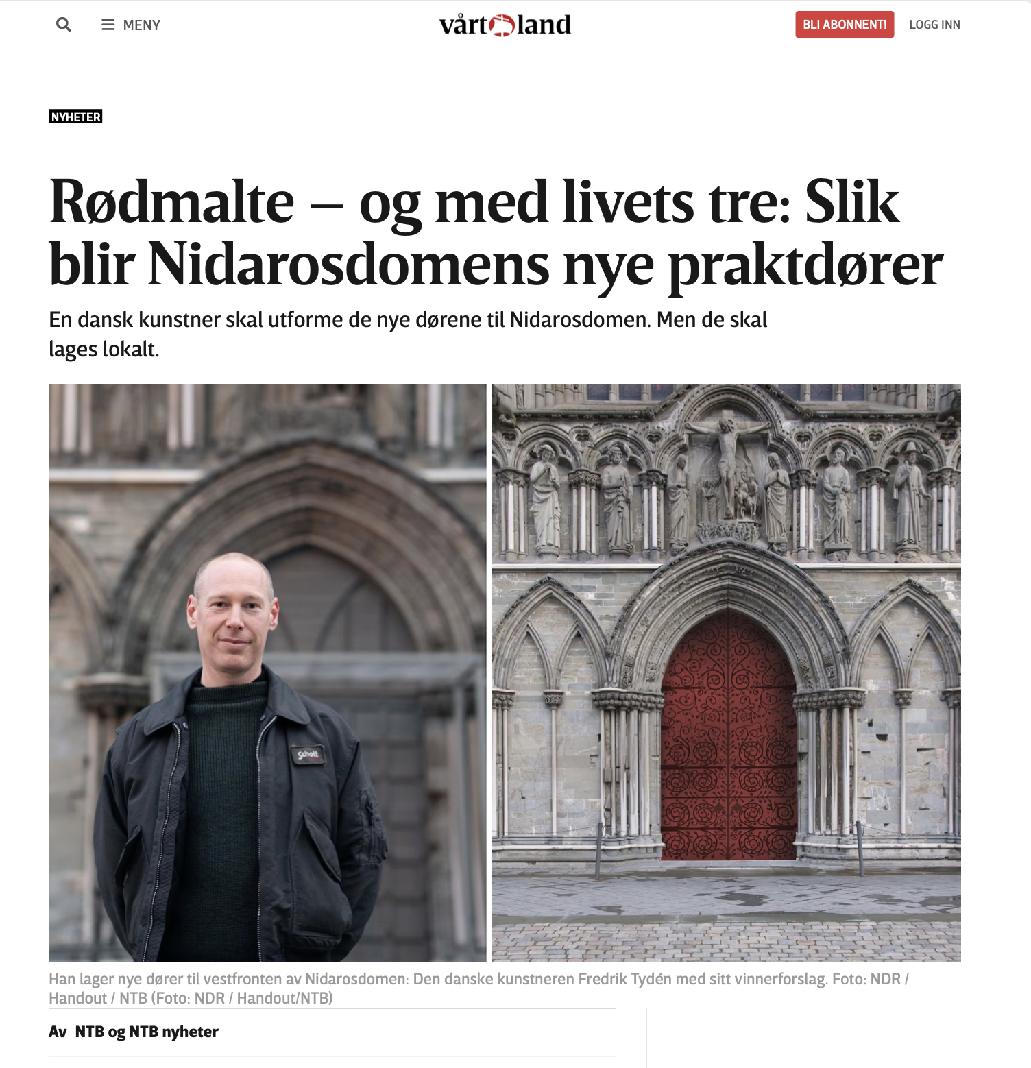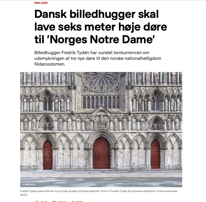 dr.dk: Dansk billedhugger skal lave seks meter højs døre til ‘Norges Notre Dame’