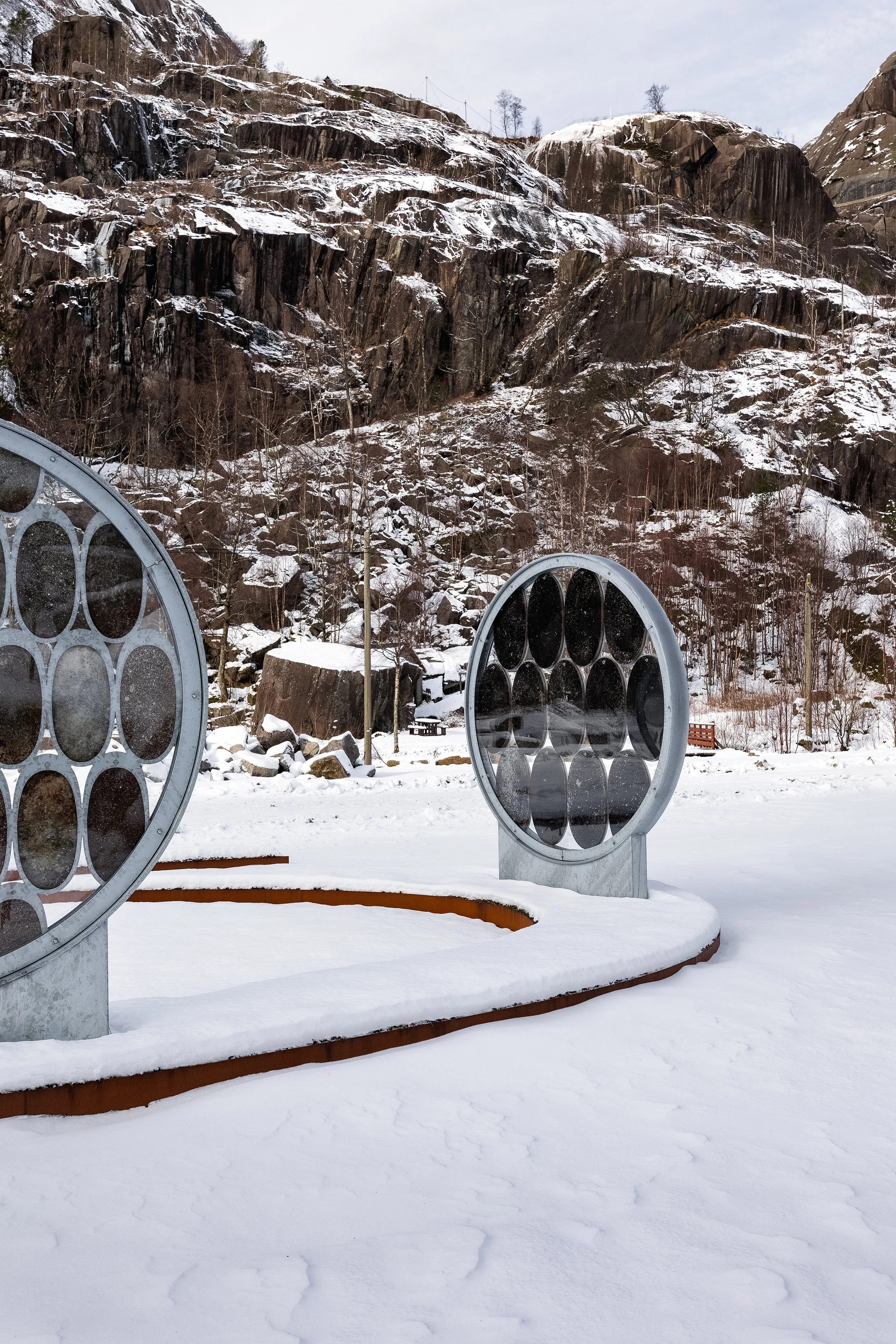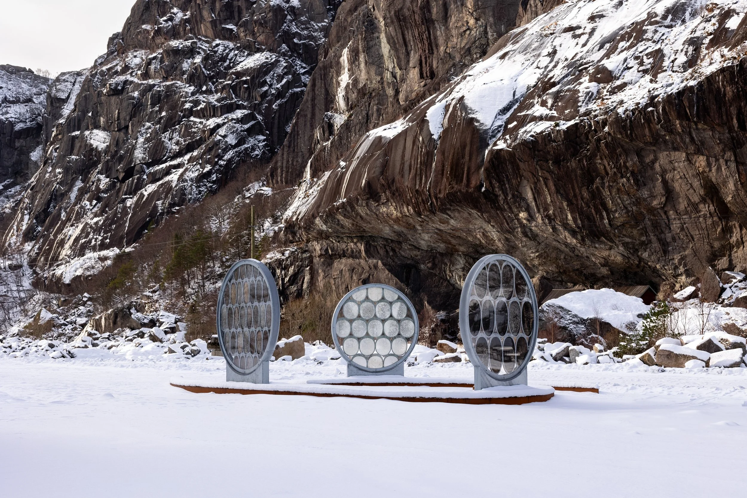 The five disks are now placed as permanent installations along the coast: the first three in Jøssingfjord in 2024, and two by the harbour in Egersund in 2025. With this project, the artists seek to raise awareness about the interplay of humans and the sea. The project challenges us to think about how our industry and daily actions affect the region's unique biodiversity, our role in preserving it for future generations, and recognize nature's ability to create life and meaning beyond the human-made.